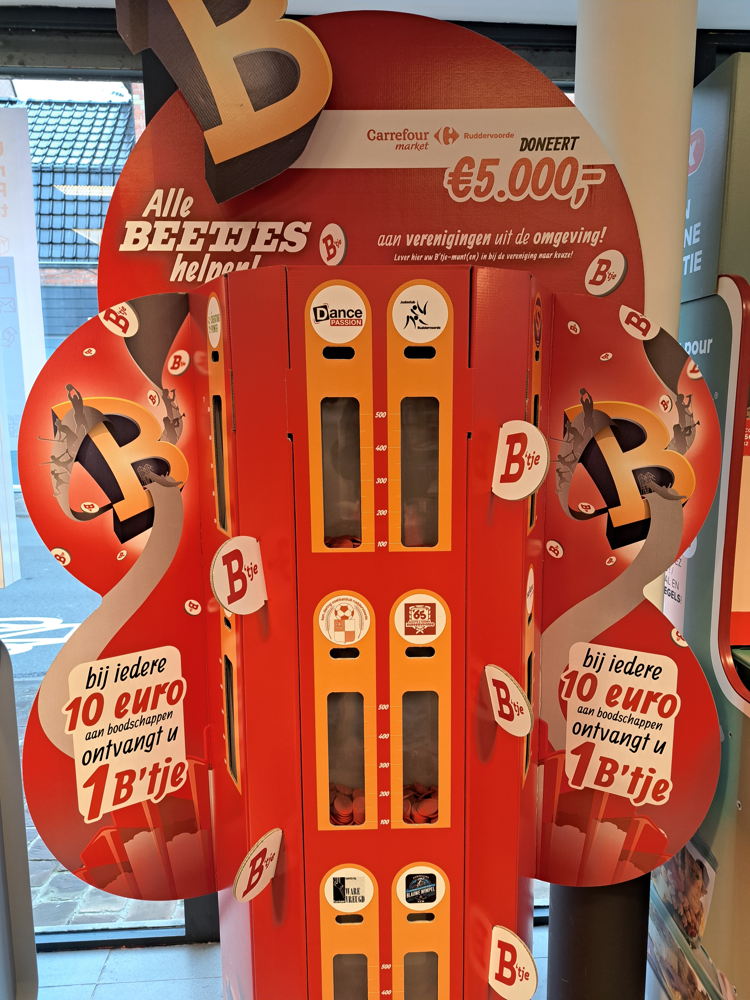 Het principe is eenvoudig: klanten krijgen per aankoop van tien euro een jeton. Die kunnen ze aan de ingang van de winkel in de totem van hun favoriete vereniging stoppen. Op het einde van de actie krijgen alle verenigingen, in functie van het aantal jetons, een deel van het bedrag.
