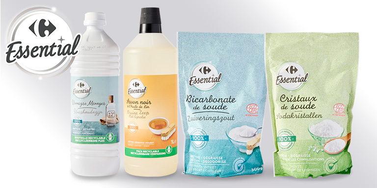 Evere, 28 octobre 2021 - Des produits écologiques, naturels et à petits prix pour composer ses propres produits ménagers : c’est ce que Carrefour propose avec sa nouvelle gamme Carrefour Essential. Engagée en faveur de la transition écologique via des actions concrètes avec sa plateforme Act For Food, l’enseigne prône les solutions durables afin de préserver l’environnement. En proposant des produits naturels à petits prix, Carrefour souhaite rendre le meilleur accessible à tous.