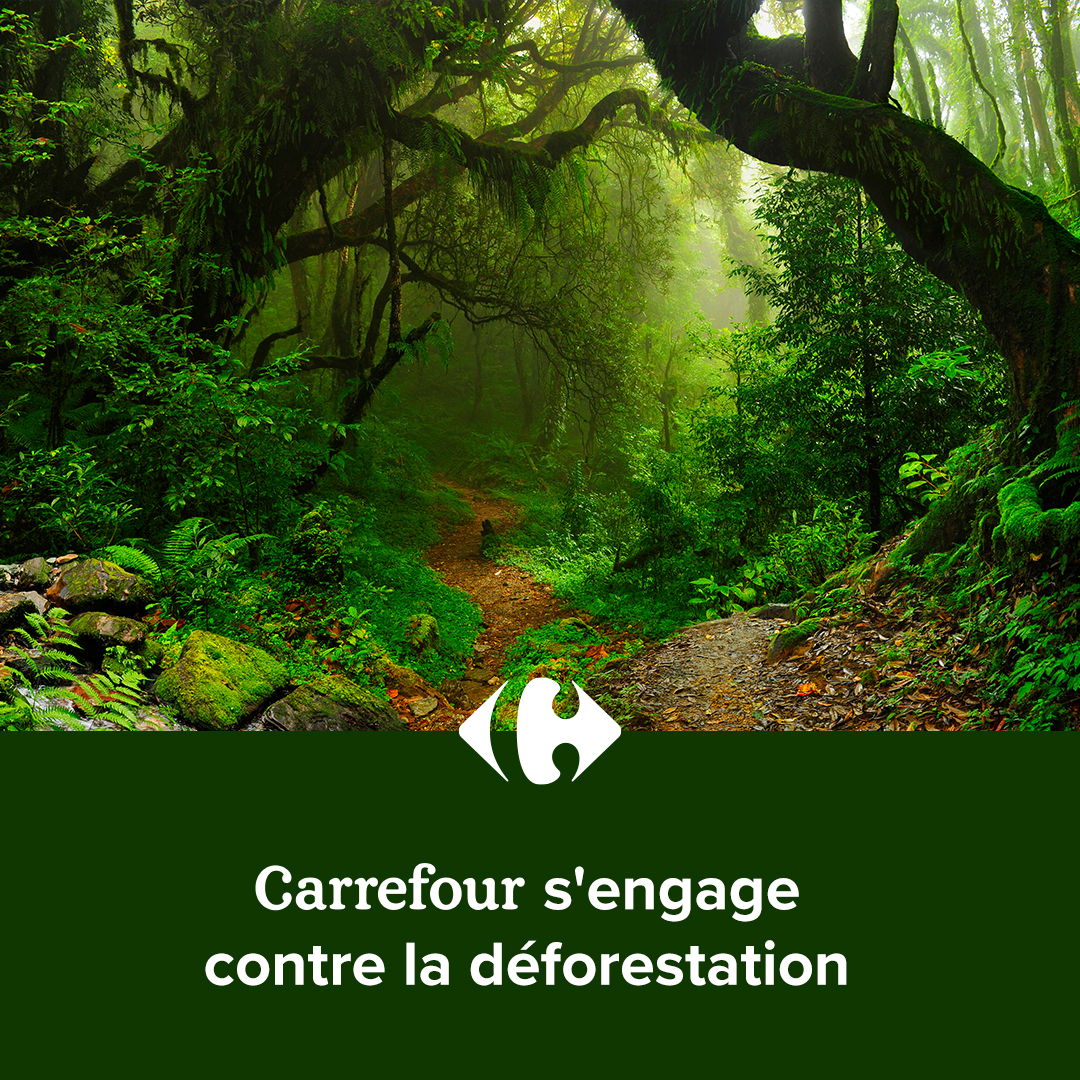 Huile de palme : 100 % de l’huile de palme et huile à palmiste utilisée dans les produits à marque Carrefour est certifiée RSPO Ségrégé (Seule certification sur l’huile de palme qui garantit que la production de cette huile ne participe pas à la déforestation. )