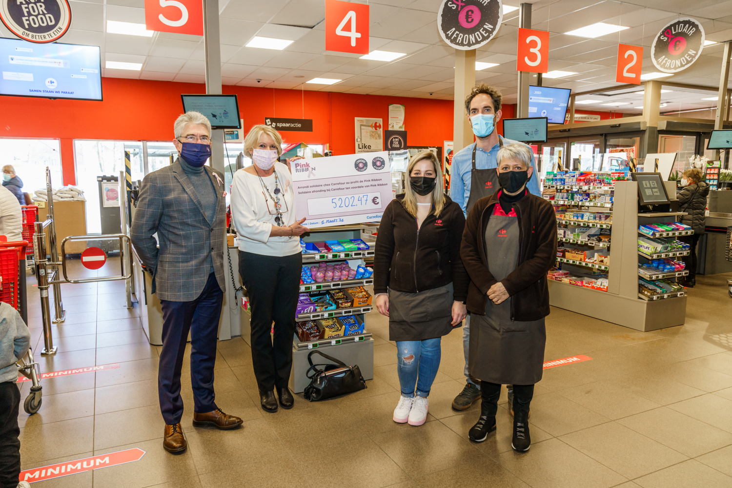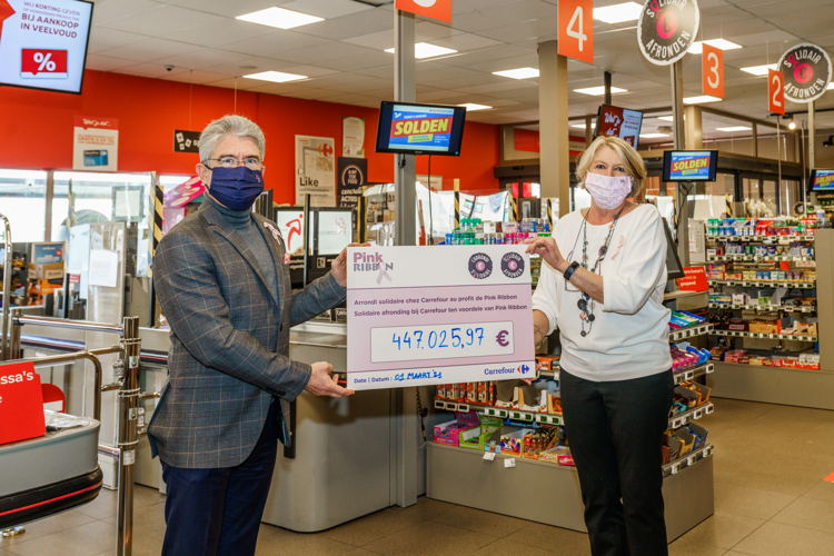 Durant tout le mois de février, les supermarchés Carrefour ont permis à leurs clients d’arrondir vers le haut le montant total de leurs achats au profit de Pink Ribbon. Cette généreuse action a permis de récolter pas moins de 447.025 € pour la bonne cause.