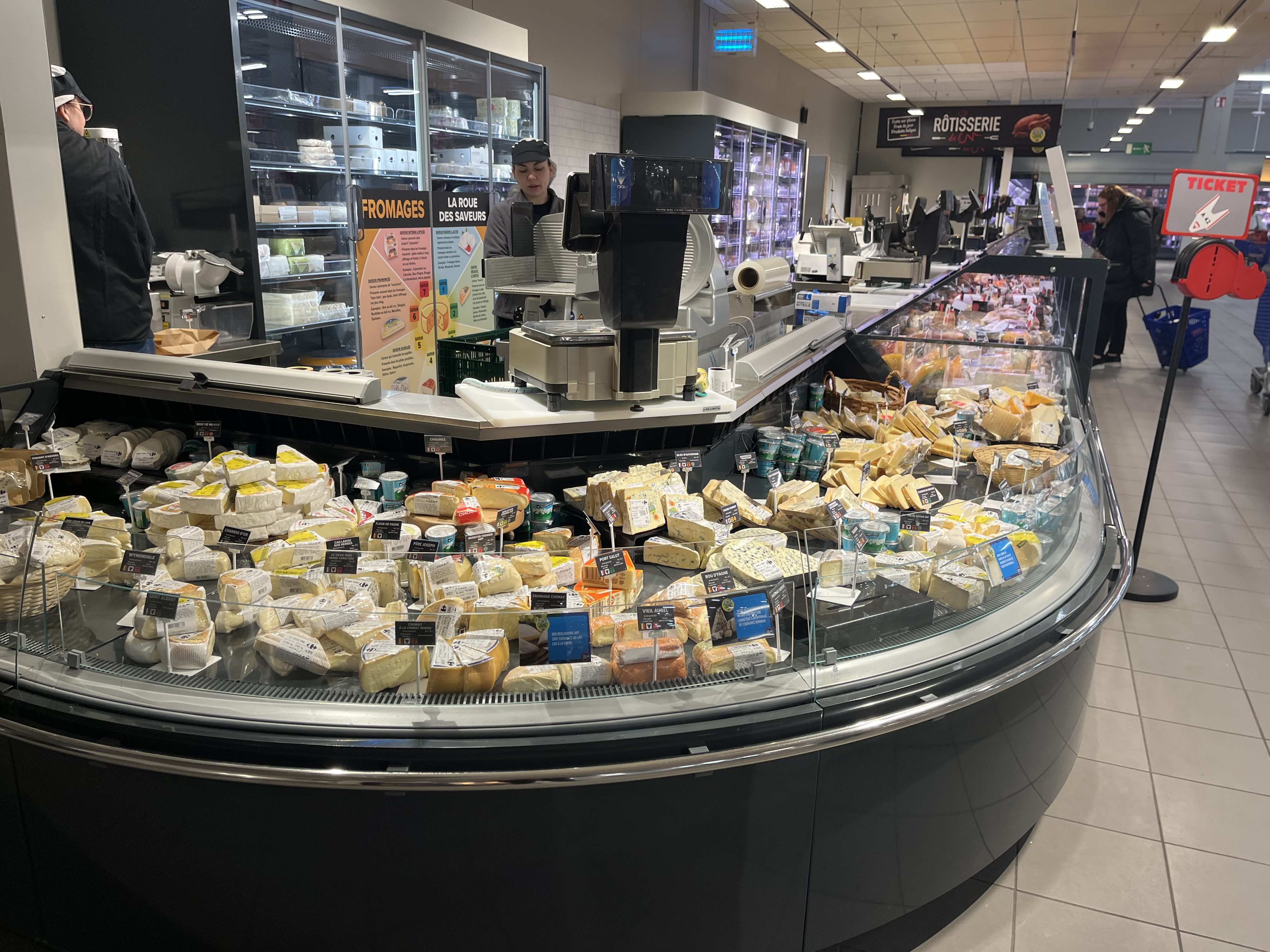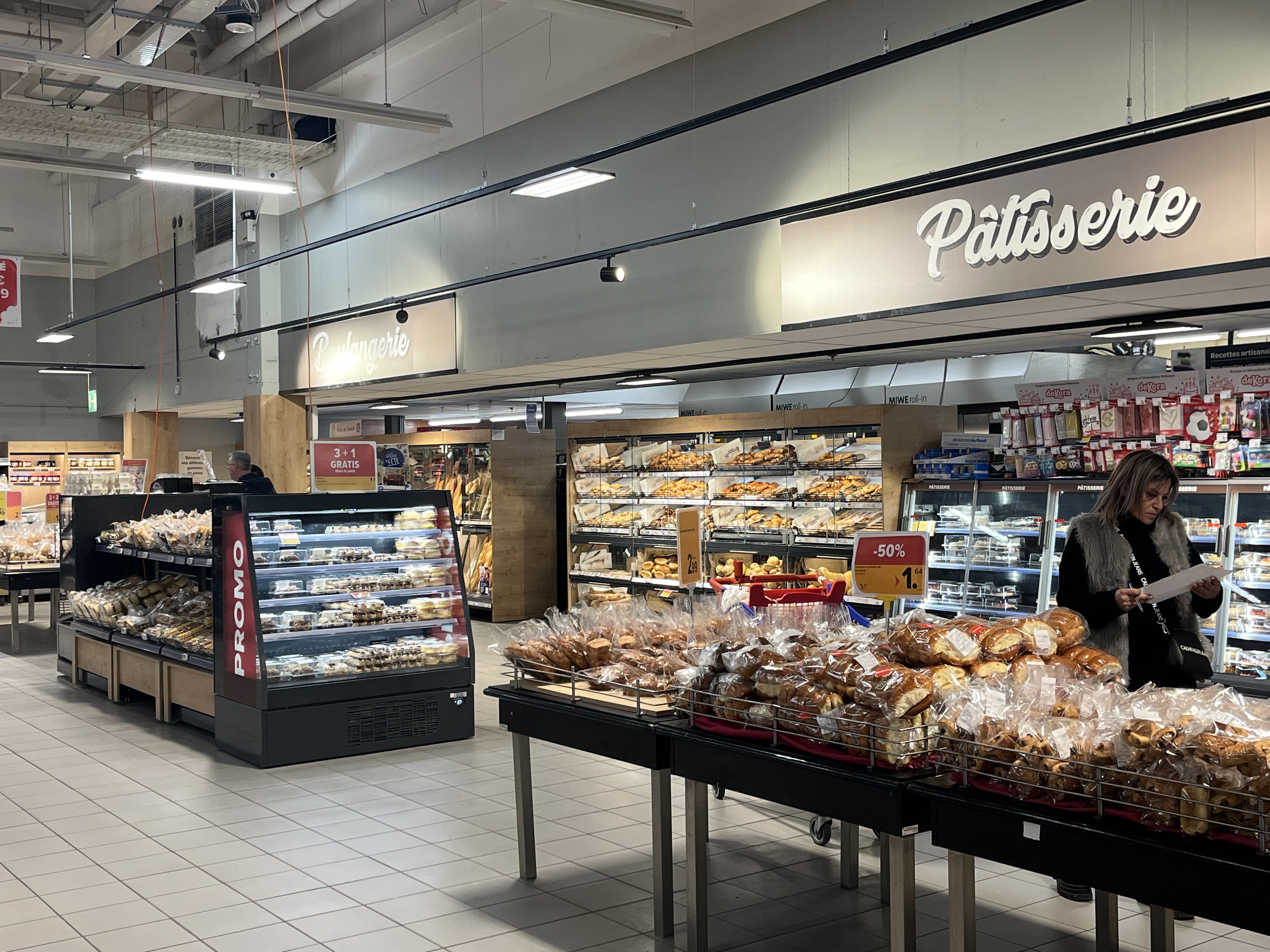 Le marché des produits frais constitue le cœur battant du magasin. Aux trois comptoirs en service – boucherie, poissonnerie et traiteur – les clients sont servis avec le sourire. De plus, la boulangerie propose en permanence du pain et des pistolets fraîchement préparés sur place.