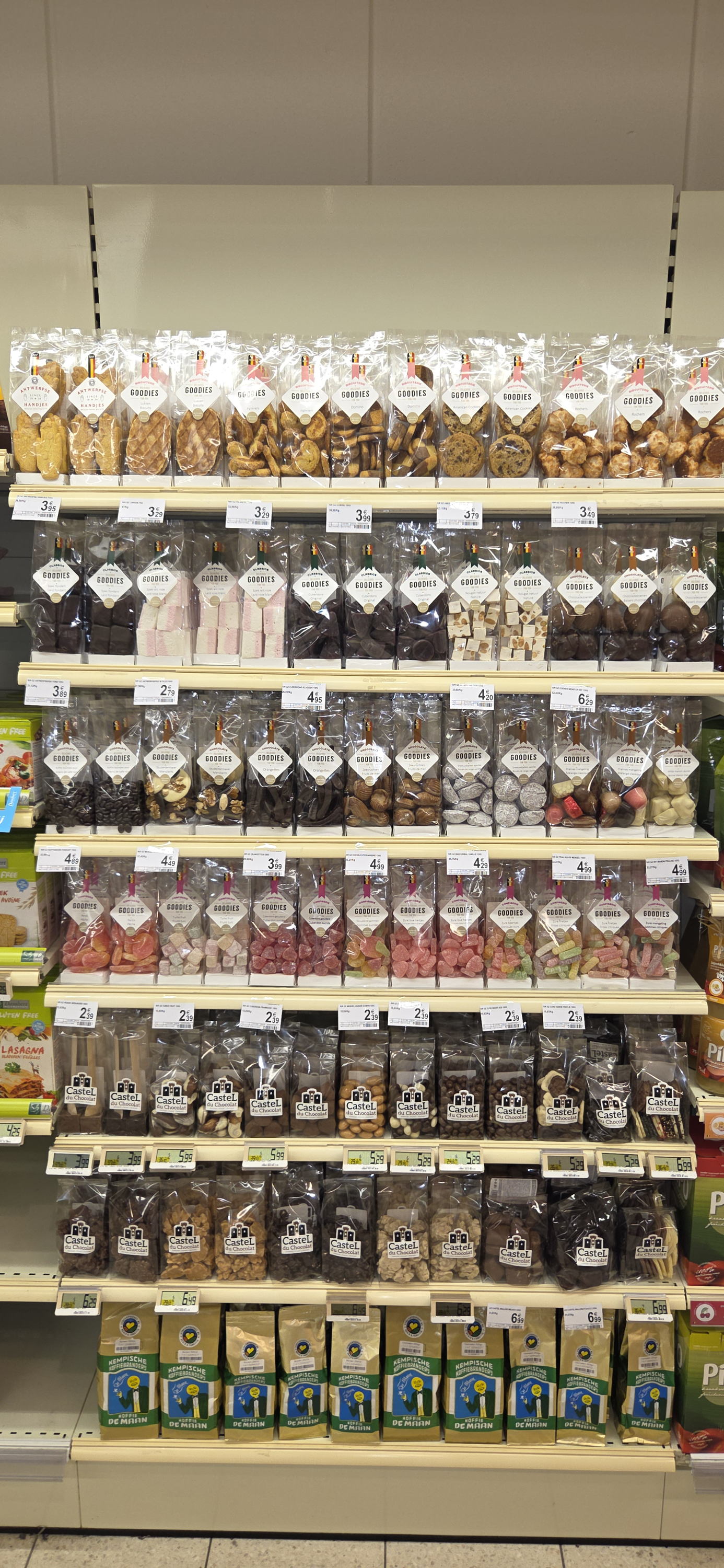 Les produits locaux occupent également une place importante dans les rayons. Les clients y trouvent notamment du riz au lait et des puddings de De Melkweg, du chocolat de Castel, une gamme de Blueberry Fields et du café de Koffiebranderij De Maan à Geel.