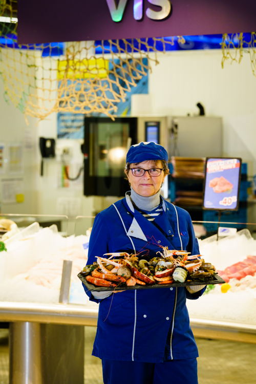 Carrefour is de enige detailhandelaar die fysiek aanwezig is op de vismarkten van Zeebrugge en Oostende. Zo kan de retailer de beste producten uitkiezen. Het is ook een garantie voor versheid: de vis die ‘s ochtends wordt aangekocht, ligt de volgende dag in de winkel. Professionele visverkopers snijden de vis in stukken om ze aan te bieden in de rekken of aan de verstoog waar klanten advies kunnen vragen en zelf hun porties kunnen uitkiezen.